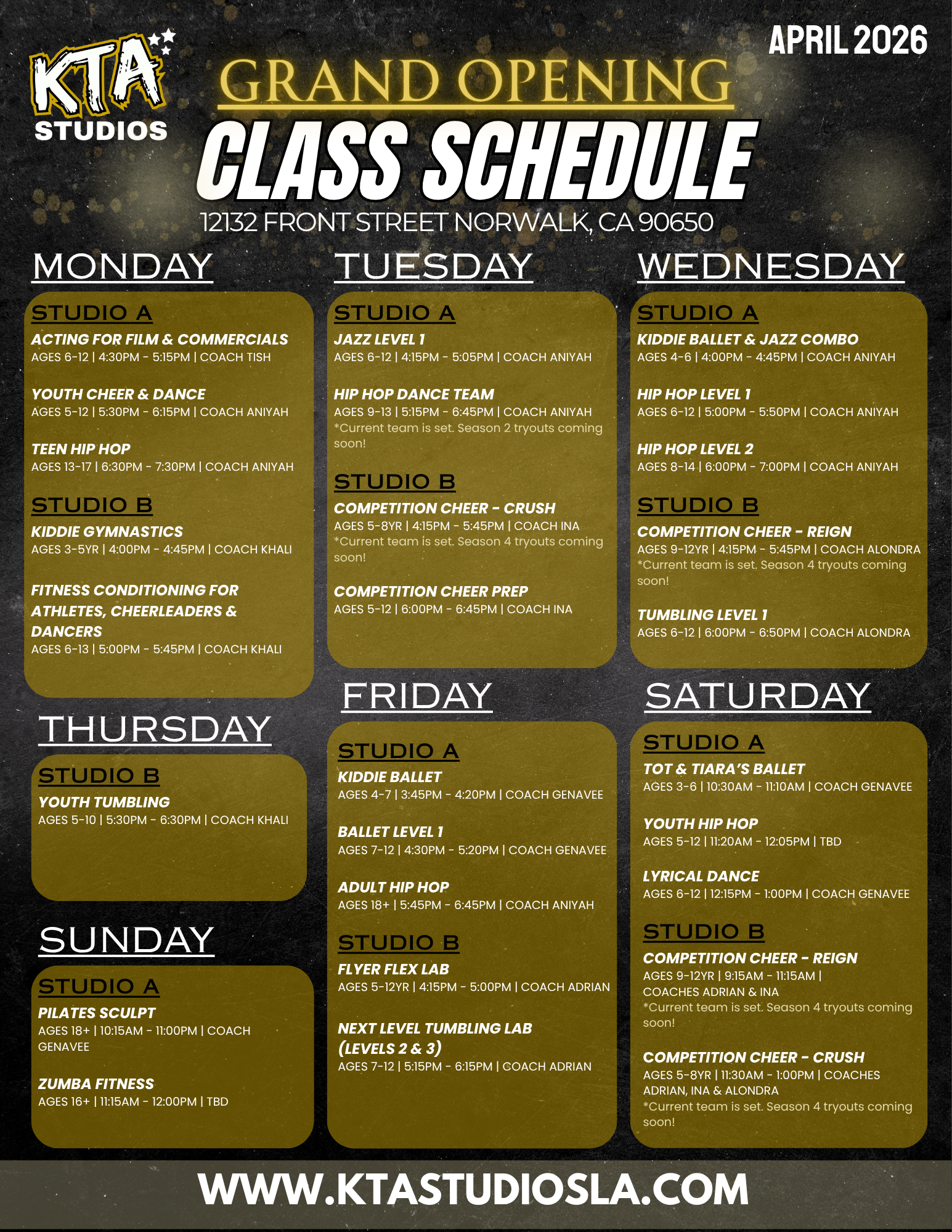 Tentative April Schedule | Registration Opens March 30